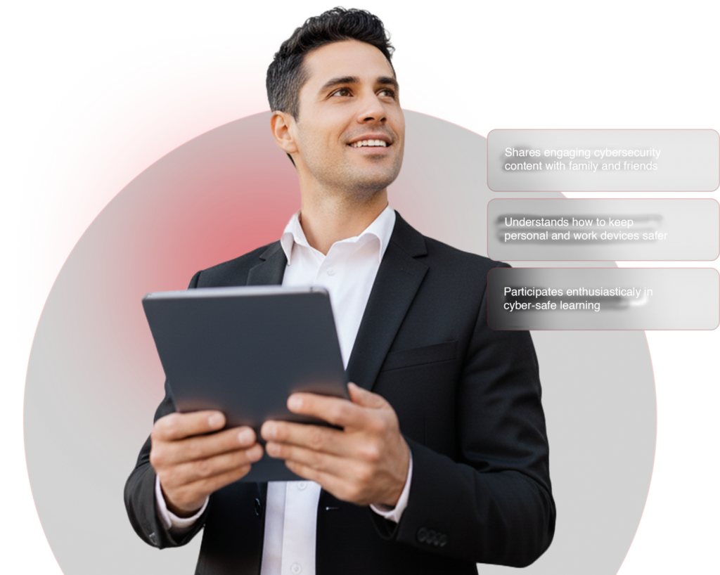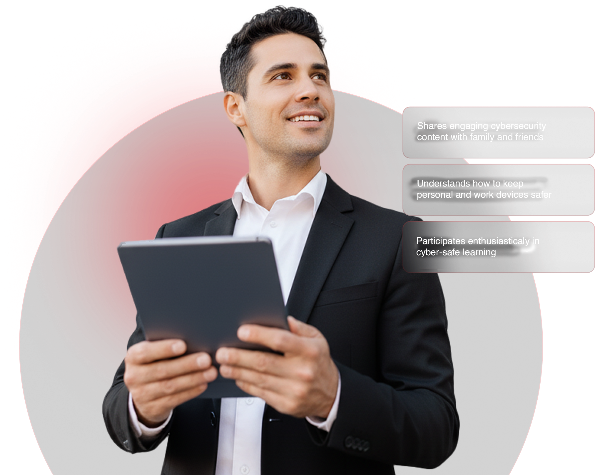 Only solution protecting workplace AND family. Security awareness that goes home with your employees.