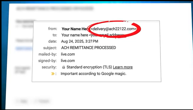 The video breaks down three high-impact scam types: emails that appear to come “from yourself,” voicemail-notification scams that link to realistic but fake login pages, and payment-demand scams pretending to come from lawyers or professional services. Each example shows users where scammers hide clues—such as suspicious sender addresses, incorrect URLs, and phony verification steps—and how cybercriminals use urgency to manipulate victims.